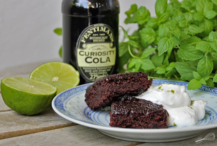 Vaan millaisia olivat? Makeita ja tahmeita! Pieni kirpakkuus olikin paikallaan, joten päädyin vatkaamaan rinnalle kermavaahtoa – ja tässä tapauksessa soijasta, kun maidotonta oli pyydetty. Vaahdon maustoin vielä limellä, jotta leivonnaisen makeus taittuisi ja vaahdon itselle totutusta poikkeava ominaismaku peittyisi. Jo toimi, makeannälän tappajat.