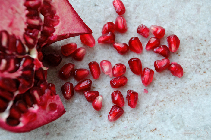 Tällä kertaa heitin salaattiin pinaattia, jonka sanotaan auttavan ruoansulatuksessa sekä puhdistavan paksusuolta kuona-aineista. Ja kun näin flunssakauden keskellä eletään: C-vitamiinipitoinen granaattiomena ei ole ainakaan pahitteeksi.