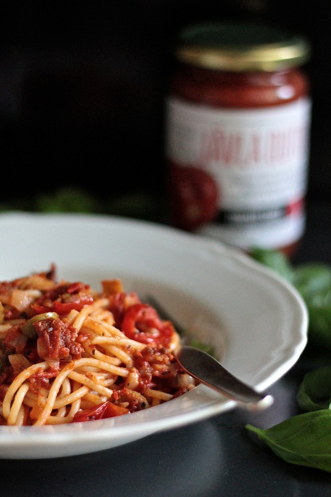 Tähän pastaan käy mikä tahansa (yrttinen) tomaattikastike, ja paahdettuja tomaatteja kannattaa tehdä kerralla enemmänkin, sillä maistuvat sellaisenaan, leivän päällä… Ihania, ihania ovat!