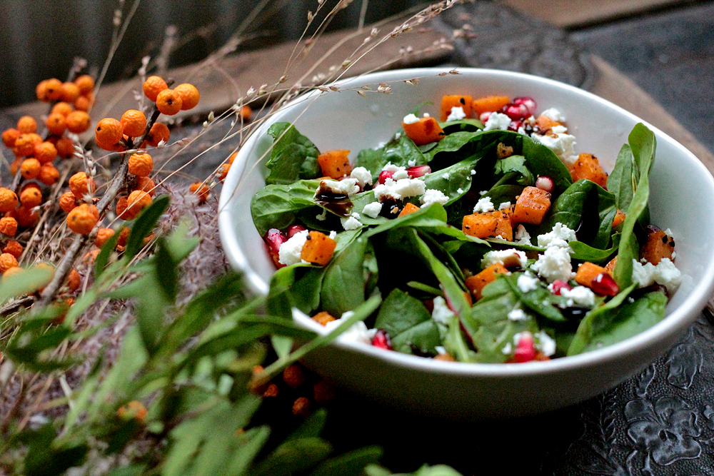 Bataatin tai kurpitsan palat yhdistettynä fetaan ja granaattiomenaan on yksinkertaisuudessaan loistoyhdistelmä. Salaatti, jota kauhoo suuhunsa mieluusti sellaisenaan tai vaikka grillatun kanan kanssa.