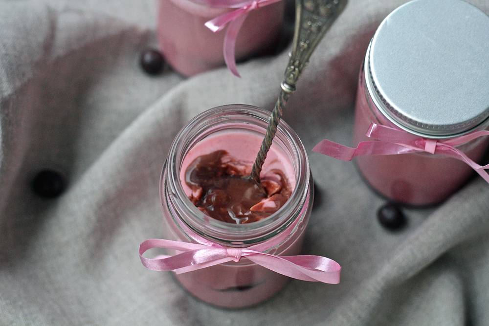 Vadelmainen pannacotta suklaasydämellä sai juhlaväen hiljaiseksi. Kuului vain lusikoiden kilinää.