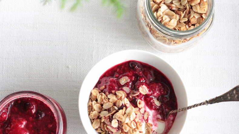 Jouluisen granolan ja glögihillon voi pakata lasipurkkeihin. Maistuvat joulupäivän aamuna esimerkiksi jogurtin seurana.