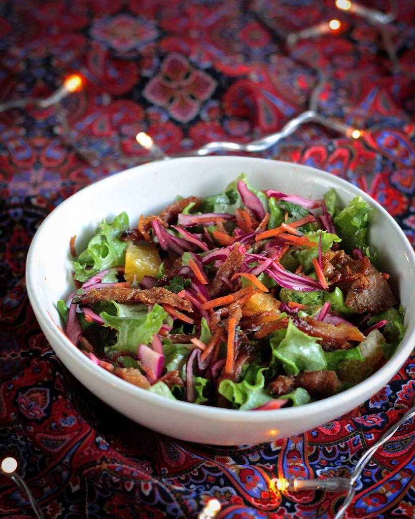 Makean mausteinen karamellisoitu nyhtökinkku raikkaan salaatin seassa on koukuttava yhdistelmä. Ei uskoisi, että tässä sitä syödään joulukinkun tähteitä! Yhtä lailla glögi tekee kinkulle ihmeitä!