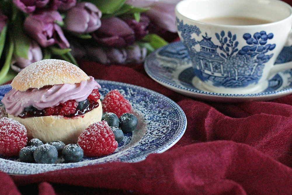 Pehmeä pulla ja mehevän marjaisa kuningatar-täyte on kevyempi kuin kaupan tiskiltä myytävät laskiaispullat, mutta ei niitä tätä syödessä tee mieli. Marjat kääntävät ajatukset mukavasti suloisiin kesäpäiviin. Niitä odotellessa…