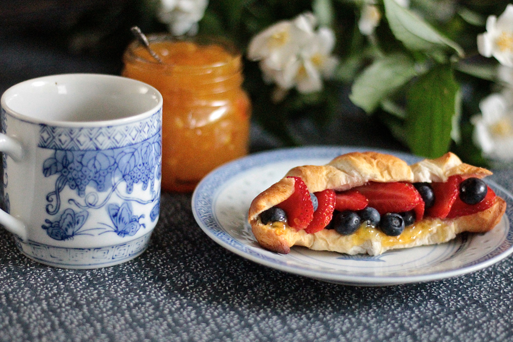 Appelsiinimarmeladi-mustikka-mansikka-yhdistelmä on myös herkullinen vaikkapa croissantin välissä. Ja mitä olisikaan pinaattiletut ilman mansikka- tai vadelmahilloa?