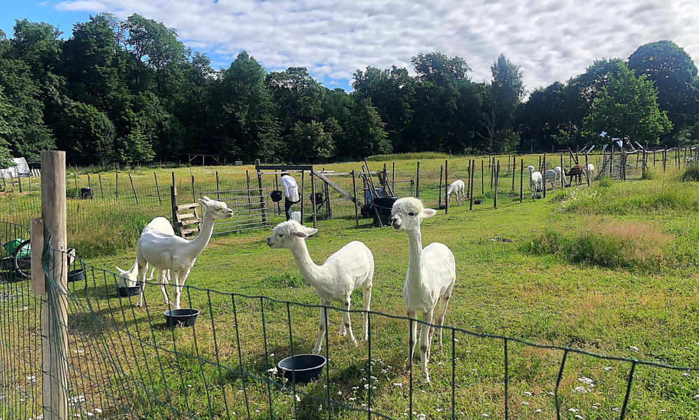 Herkuttelun ja ulkoilun välissä voi ihastella alpakoita ja käsityöläisten taidonnäytteitä (alla olevat kuvat saat klikkaamalla suuremmiksi). Tarjolla on esimerkiksi niin Ruukinkehräämön alpakkaneuleita ja -lankoja, Second Chancen kotimaisia naisten ja lasten vaatteita ja asusteita kuin Kaarnalaivan luonnonmukaisesti valmistettuja harjoja.