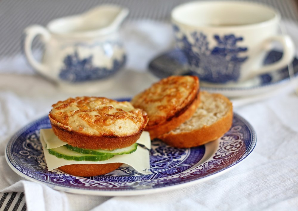 Heräsin sunnuntaihin todeten, ettei kaapissa ole leipää. Kaurapuuroa ei myöskään tehnyt mieli, joten päädyin kaivelemaan jauhopusseja kaapeista. Myllyn Parhaan Kaurainen sämpyläjauhoseos -pussin kyljestä luin proteenipitoisten pikasämpylöiden ohjeen ja päätin testata. Rahka tosin vaihtui maustamattomaan jogurttiin ja cheddar mihin lie juustonkannikkaan.