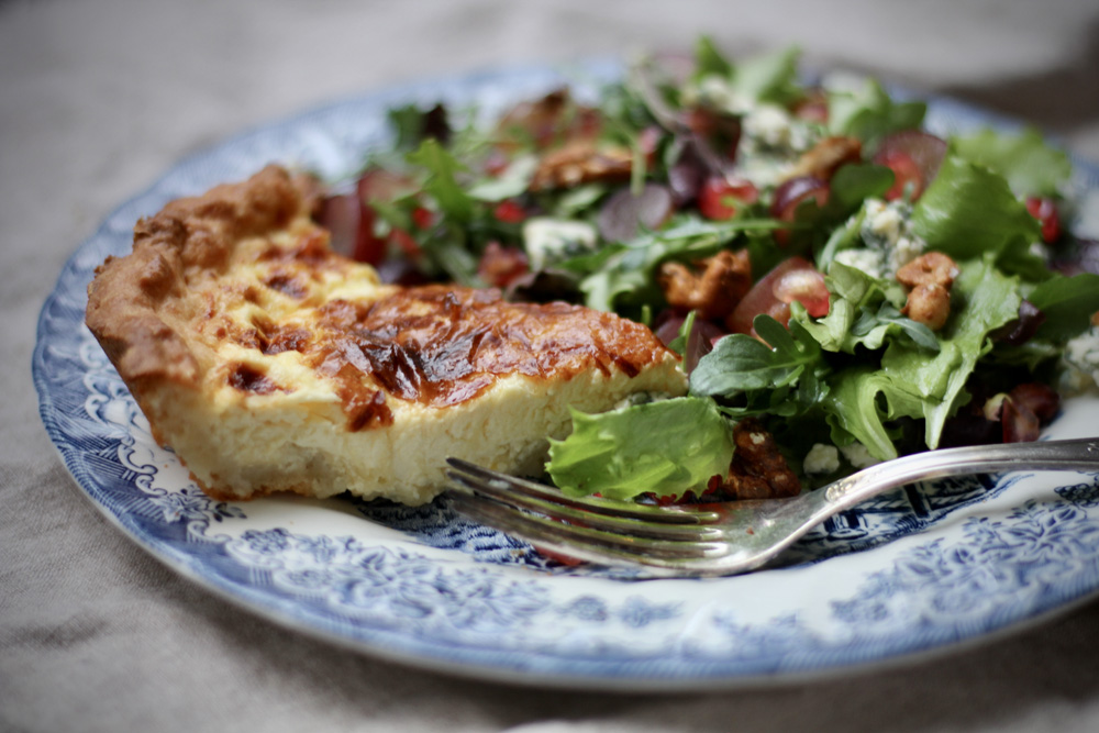 Helppoihin ja takuuvarmoihin resepteihin palaa kerta toisensa jälkeen, kuten tähän astetta kevyempään juustopiirakkaan. Toimii erinomaisesti salaatin kanssa tarjottuna.