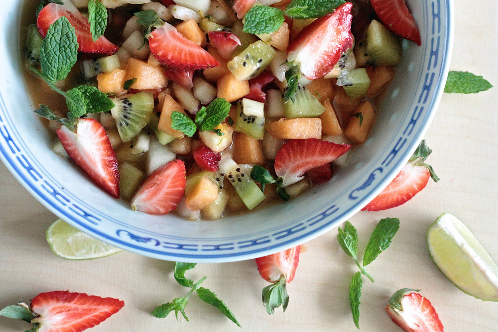 - Limetin ja mintun raikastama hedelmäsalaatti