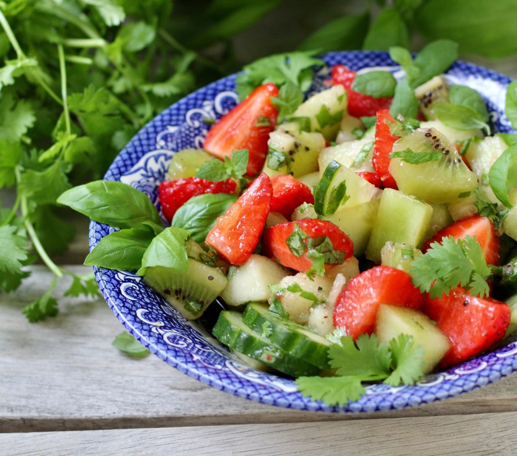 Hellepäivinä vesipitoisista kasviksista ja hedelmistä valmistettua salaattia rouskuttamalla huolehtii myös nestetasapainosta. Esimerkiksi kurkun, sellerin ja retiisin vesipitoisuus on yli 95 prosenttia ja mansikan, vesimelonin ja cantaloupen yli 90 prosenttia, joten niitä on hyvä lisätä hellekesän salaatteihin.