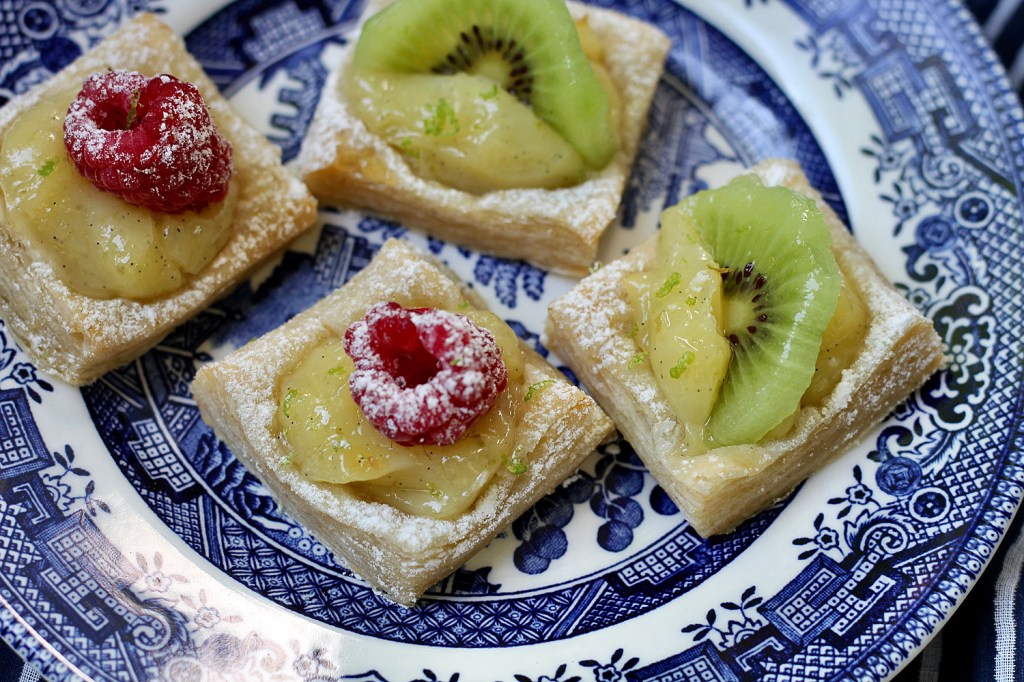 Siinä missä joulun alla nautin minijoulutortuista, kesällä lehtitaikinan päälle voi lusikoida limetillä raikastettua vaniljakreemiä hedelmillä ja marjoilla koristeltuna. Juuri sopivan kokoisia suupaloja.
