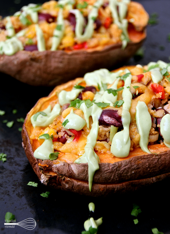 Jos tähteeksi on jäänyt broileria, mausteiset täytetyt bataatit ovat loistava vaihtoehto.