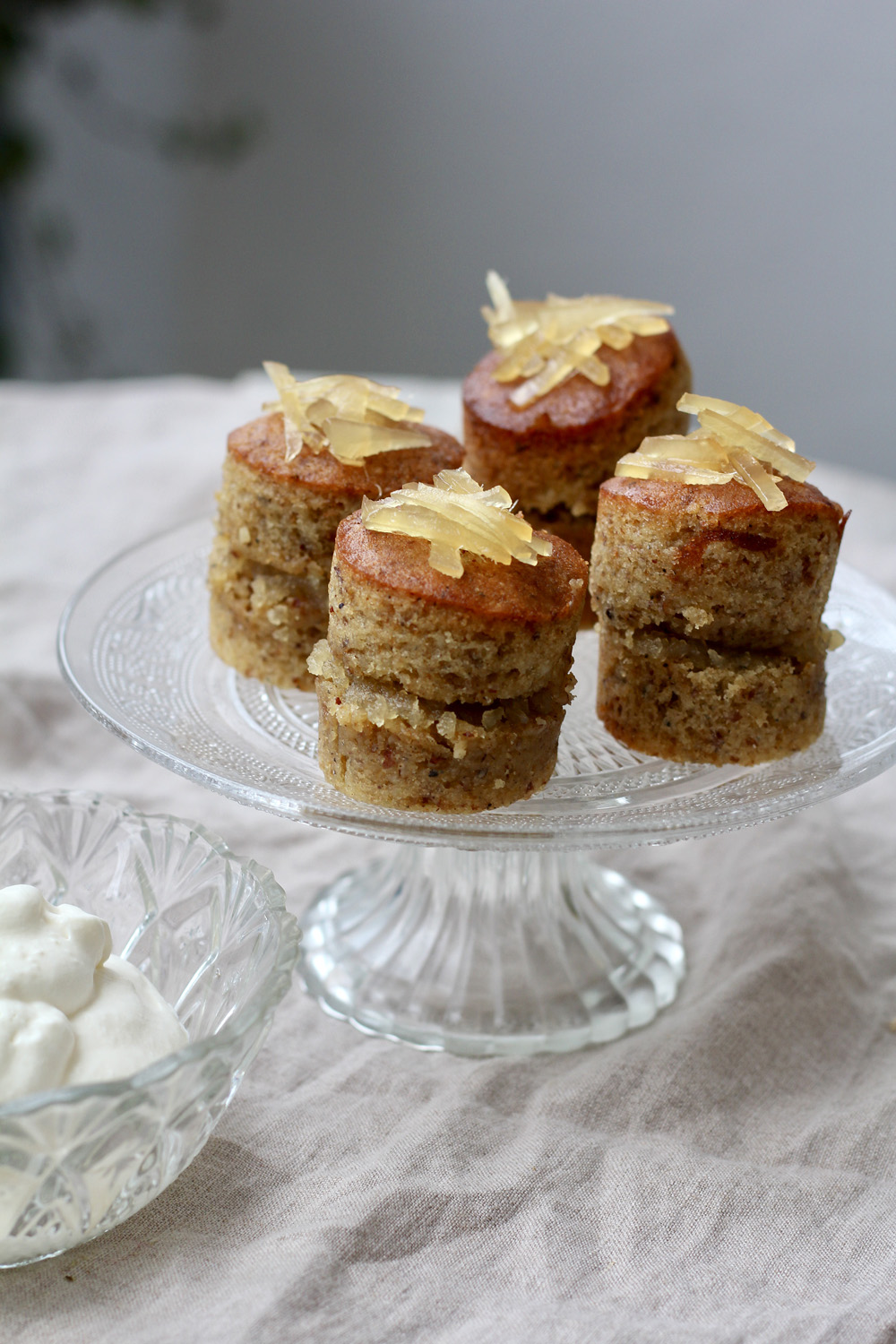 *Käytin hillottua inkivääriä ja samassa purkissa olevaa siirappia, Opies Stem Ginger in Syrap. Tortun väliin ja kermavaahtoon voit käyttää myös esimerkiksi Ginger Jam -hilloa (Ginger People).