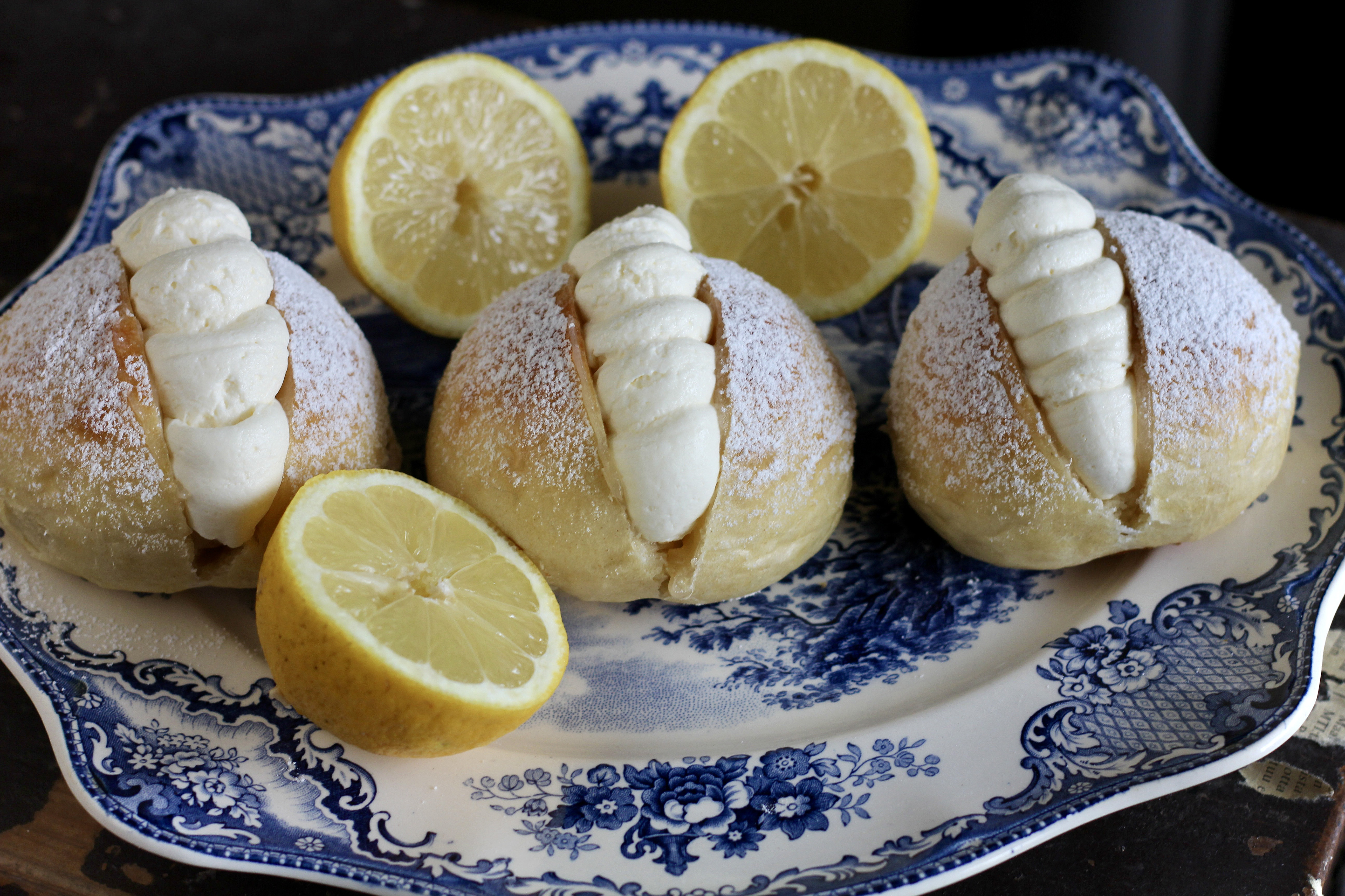 Tekemäni maritozzoni ovat varsin maltilliset mitä tulee niin pullan kokoon kuin kermavaahdon määrään. Taikinaan lisätyn sitruunankuoren lisäksi sipaisin sitruunatahnaa leikatun pullan väliin sekä maustoin sillä kermavaahdon. Mikäli et välitä kermavaahdosta, kokeile vaihtaa se esimerkiksi Valion sitruunalla maustettuun rahkaan.