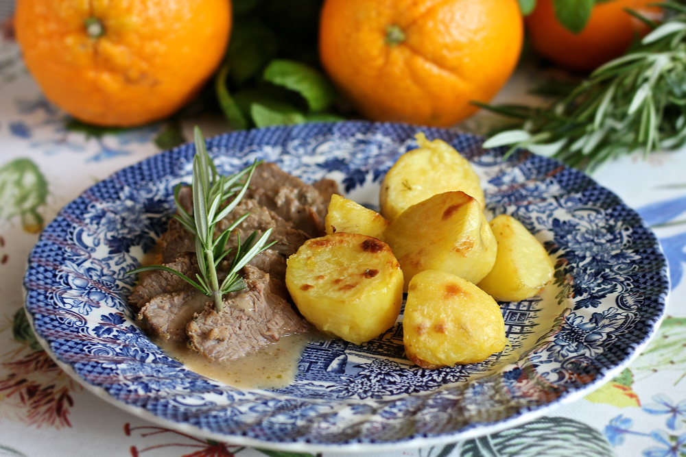 Myös appelsinin, mintun, rosmariinin ja valkosipulin marinoima karitsa on herkullista. Ja entäpä karitsan kanssa tarjottavat appelsiinin ja rosmariinin maustamat paahdetut perunat! Suosittelen.