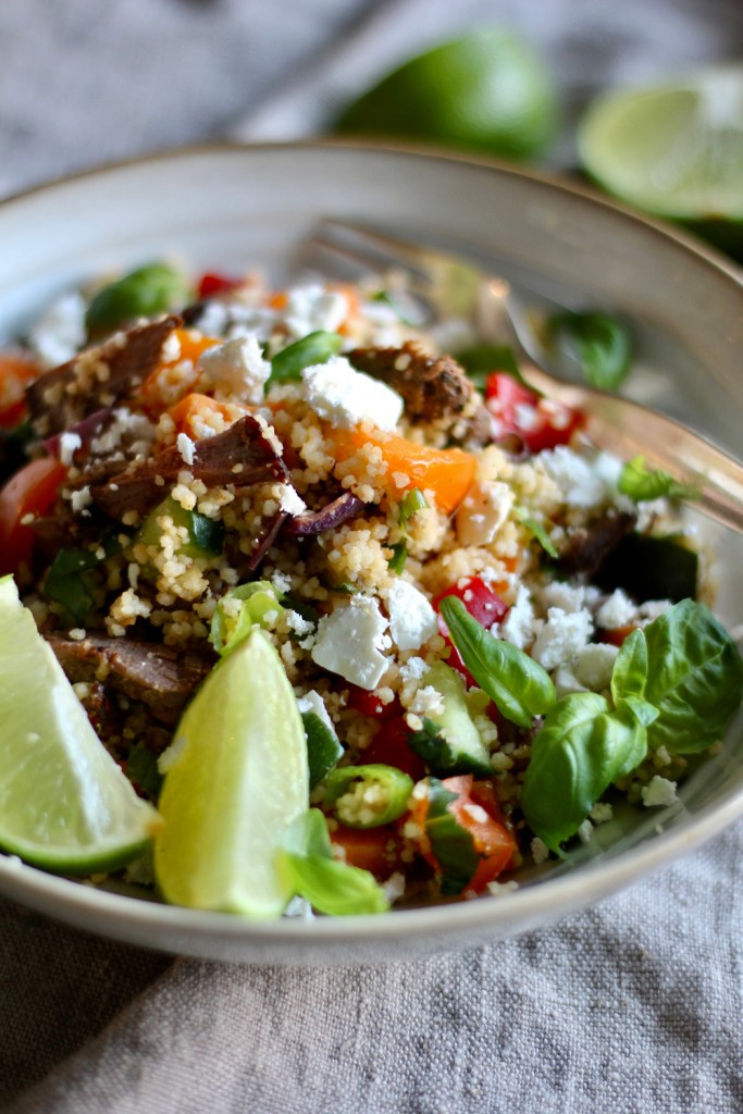 Olen maustanut kuskusin monta kertaa esimerkiksi yrttimausteilla ja chilirouheella. Jokin aika sitten silmiini osui kuitenkin ohje, jossa kuskuksen maustamiseen oli käytetty limetin raastettua kuorta. Päätin kokeilla, joskin niin että kuoren raastamisen osan vedestä korvasin limetin mehulla. Toimi, vieläpä niin hyvin että mun kuskussalaatit taitavat jatkossa syntyä pitkälti limetillä maustettuna.