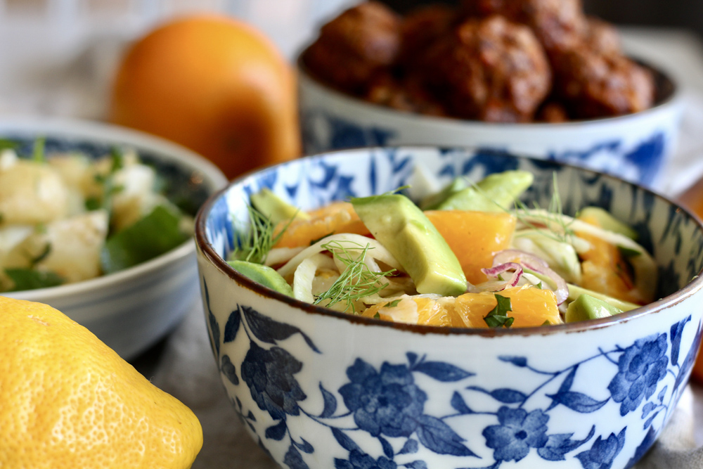 AVOKADO-APPELSIINI-SALAATTI PIKKELÖIDYILLÄ FENKOLEILLA