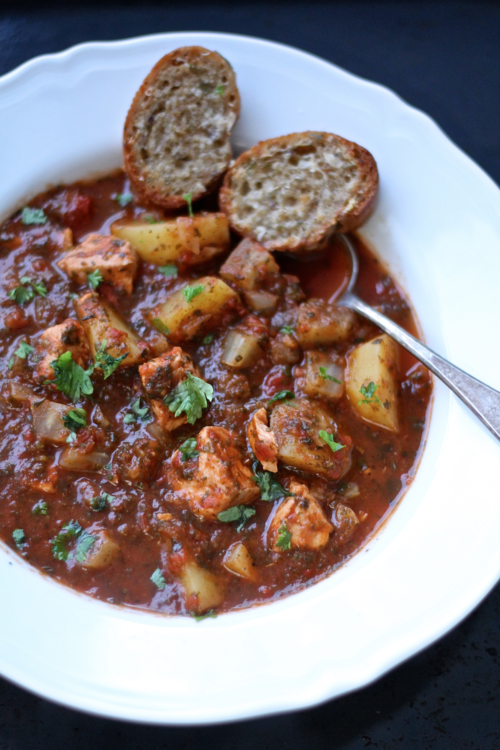 Tomaattimurskan ja pakastetun pinaatin myötä ranskalainen kalakeitto, eli fenkolin makuinen lohikeitto, on saanut ruskean värin ja sakean liemen. Tämä hurmaava keitto päätyi aikanaan testattavaksi dekkarin sivuilta, siitä myös keitolle antamani lempinimi dekkarikeitto.