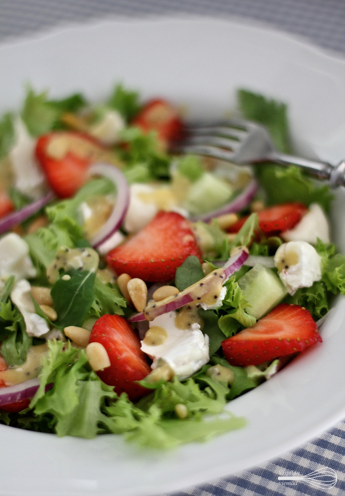 Raparperista syntyy myös niin marinadi (esimerkiksi broilerille) kuin salaatinkastike, jota on mukava lorauttaa salaattiin, josta löytyy esimerkiksi mansikoita ja vuohenjuustoa (tai fetaa).