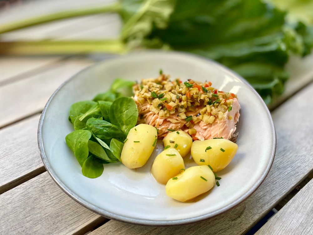 Lähes päivälleen 10 vuotta sitten tein ensimmäistä kertaa raparperin kruunaamaa lohta. Hämärän muistikuvan mukaan se syntyi kovaan nälkään tähteistä, mutta mene ja tiedä. Hyvää se joka tapauksessa oli, sillä tämänkin kevään ja alkukesän aikana samaista raparperilohta on tullut tehtyä jo useampaan otteeseen ja useammalle seurueelle. Maistuu niin varhaisperunoiden kuin salaatin seurassa. Ja hyvänen aika, tuotahan söisi vaikka sellaisenaan, ja kylmänä, sillä lohifileen päälle kasattava seos maustaa lohifileet niiiiin herkullisiksi.