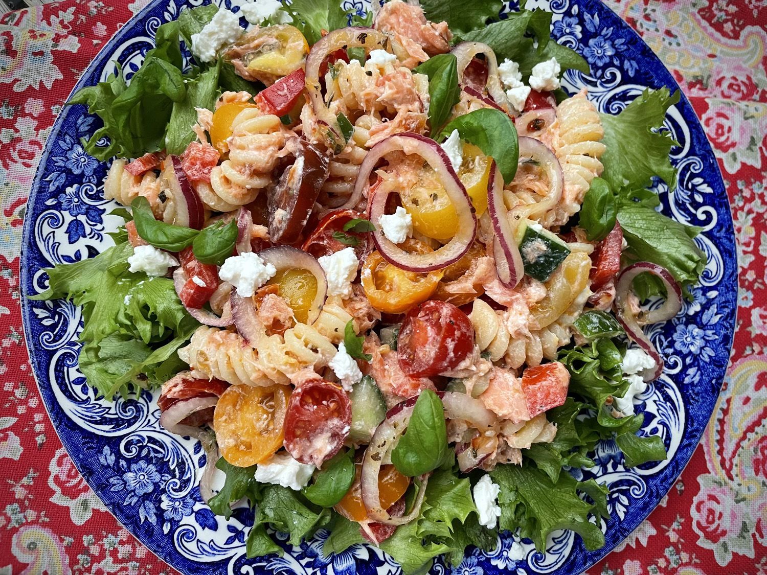 PASTASALAATTI LÄMMINSAVULOHELLA JA FETALLA (4:lle)