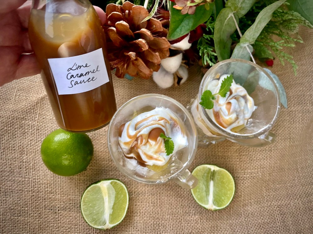 Limetillä maustettu kinuskikastike sopii loistavasti ananaksesta tehtyyn Eton messiin. Kastikkeella maustaa kätevästi myös esimerkiksi jäätelöannokset.